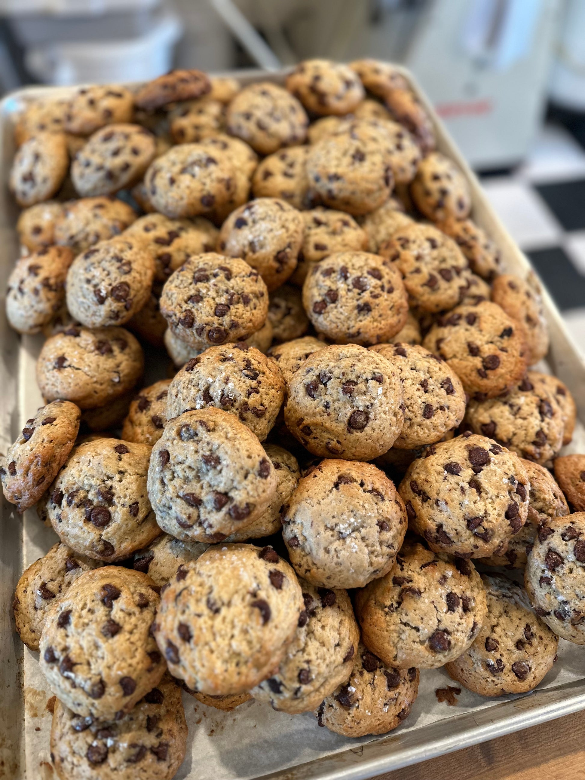 Thick and gooey chocolate chip cookie made with sourdough starter, milk and dark chocolate chips, and topped with flakey salt. Cookies are sold 6/pack.